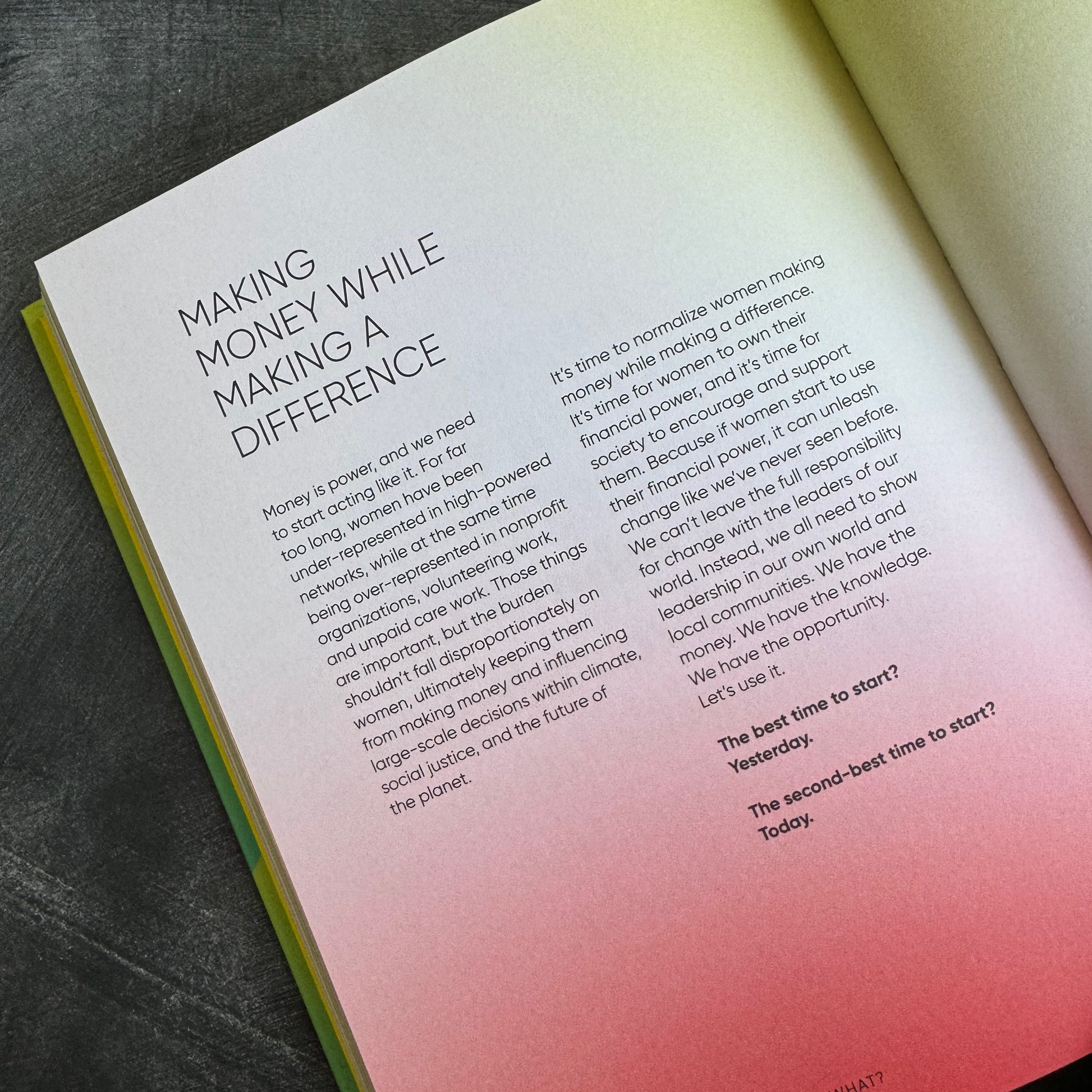 Money is power, and we need to start acting like it. For far too long, women have been under-represented in high-powered networks, while at the same time being over-represented in nonprofit organizations, volunteering work, and unpaid care work. Those things are important, but the burden shouldn't fall disproportionately on women, ultimately keeping them from making money and influencing large-scale decisions within climate, social justice, and the future of the planet.