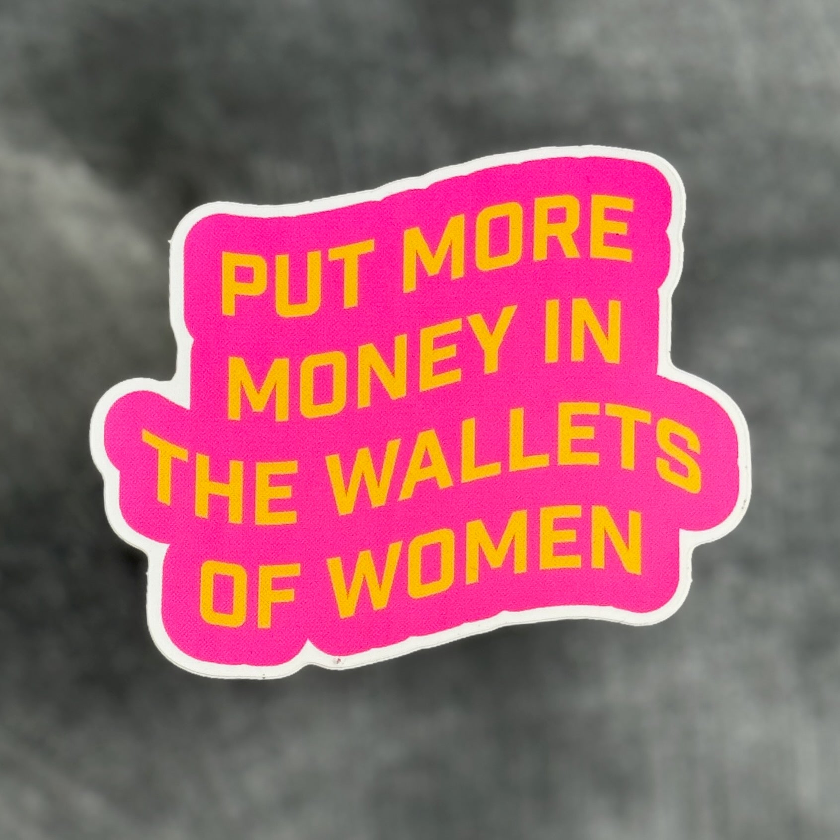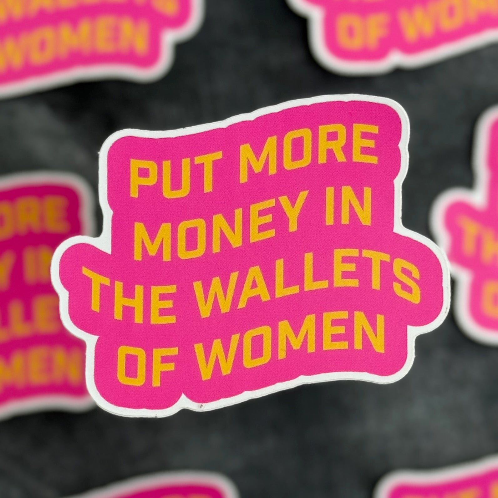 - Pink background with yellow lettering "Put more money in the wallets of women"